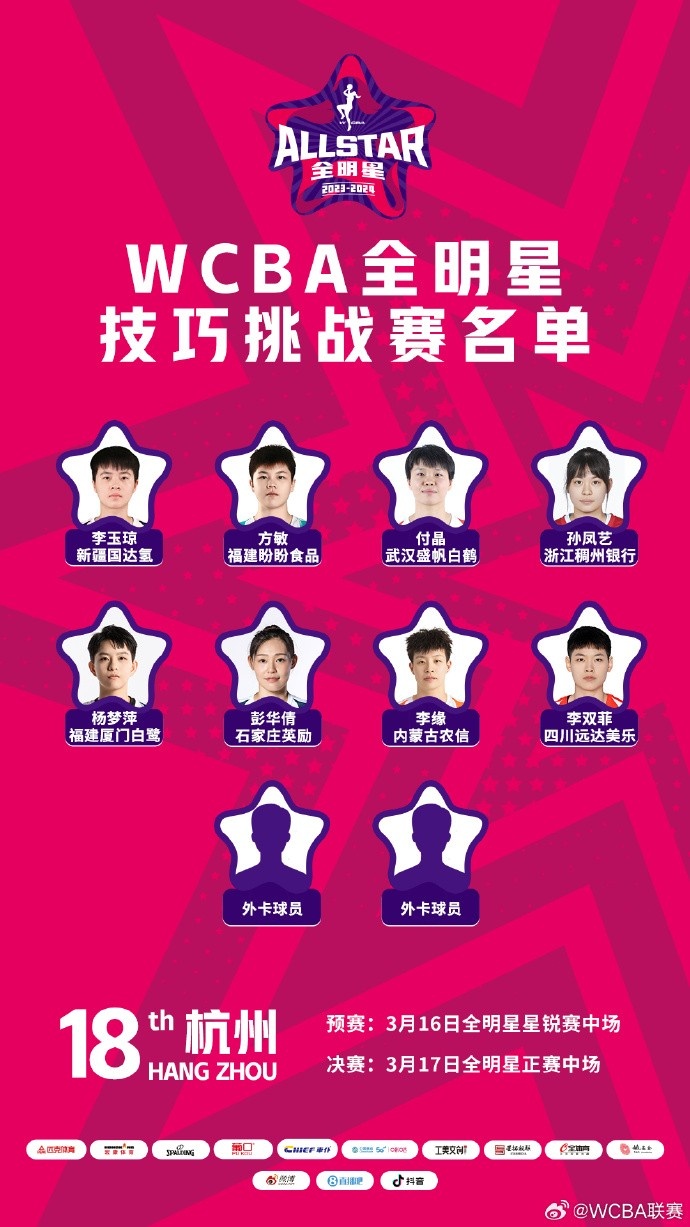 WCBA全明星技巧赛参赛名单出炉:李缘、方敏、杨梦萍、李双菲在列