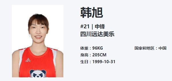 韩旭出生于1999年,根据WCBA官网显示,韩旭身高205cm,体重96KG。