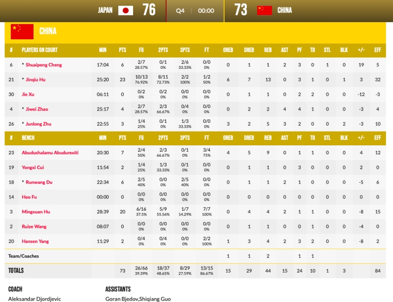 在周琦、周鹏、王哲林等国家队常客未入围亚预赛名单的情况下,胡金秋、胡明轩等人挑起球队的大梁。命中神奇三分的程帅澎等新人,虽然缺少国际比赛经验,但在比赛中敢于和对手对抗,勇于做技术动作,即使比分落后也一直没有放弃。