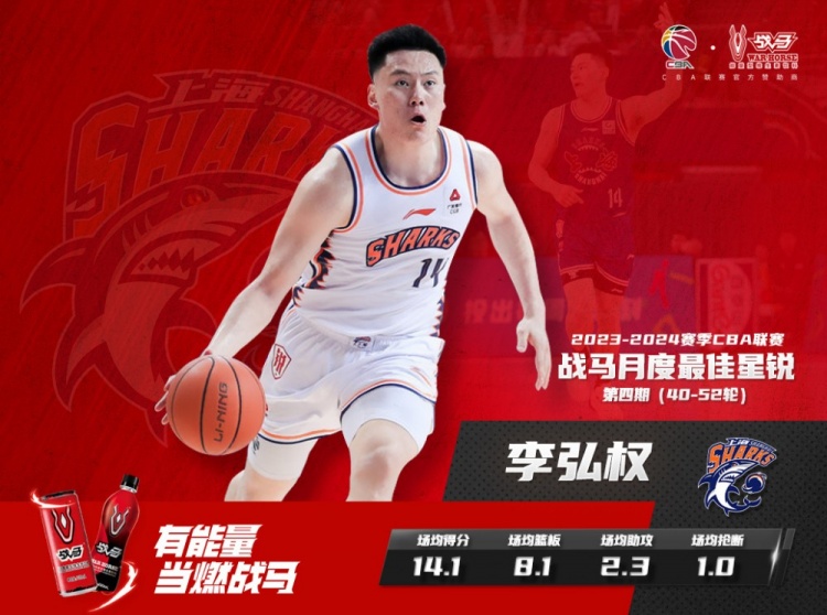 CBA官方:上海男篮球员李弘权当选本赛季第4期月度最佳星锐球员