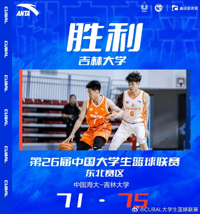 5月3日消息 第26届CUBAL东北赛区赛事正式打响,中国海洋大学和吉林大学迎来一场小组赛交手。