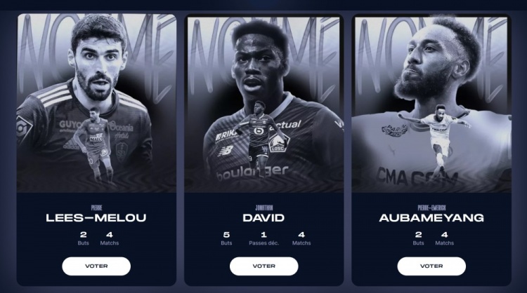 法甲2月最佳球员3人候选:奥巴梅扬、乔纳森-戴维、里斯-梅洛