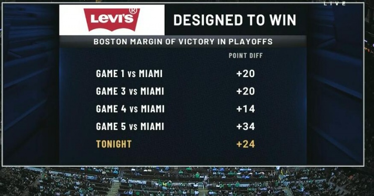 ????场均净胜22.6分!季后赛至今凯尔特人赢球的比赛全是大胜