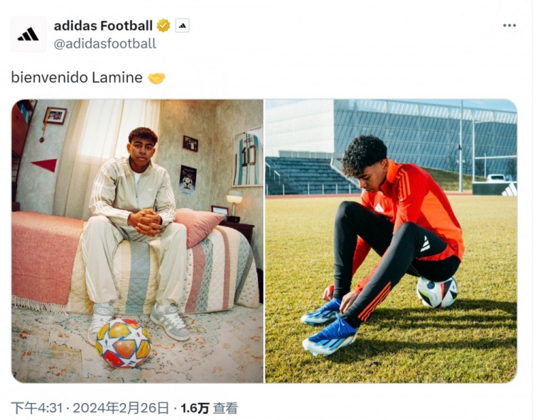 亚马尔与阿迪达斯签约:我感到自豪,偶像梅西一直与阿迪合作