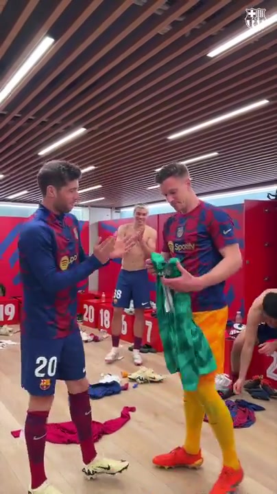 达成巴萨生涯400场里程碑,特尔施特根赛后获赠纪念球衣