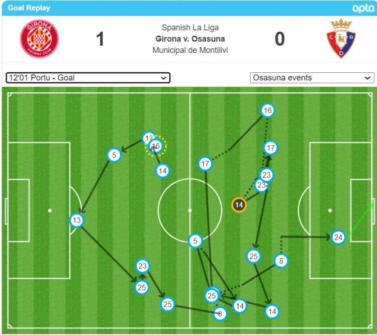 流畅!赫罗纳本赛季联赛通过20+连续传球打进4球,西甲最多