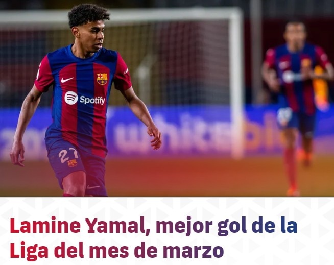 官方:亚马尔vs马洛卡的世界波被评为西甲3月最佳进球