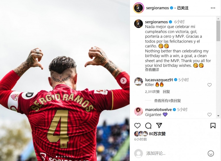 38岁生日夜破门!拉莫斯:没有比进球、零封和MVP更好的庆祝了
