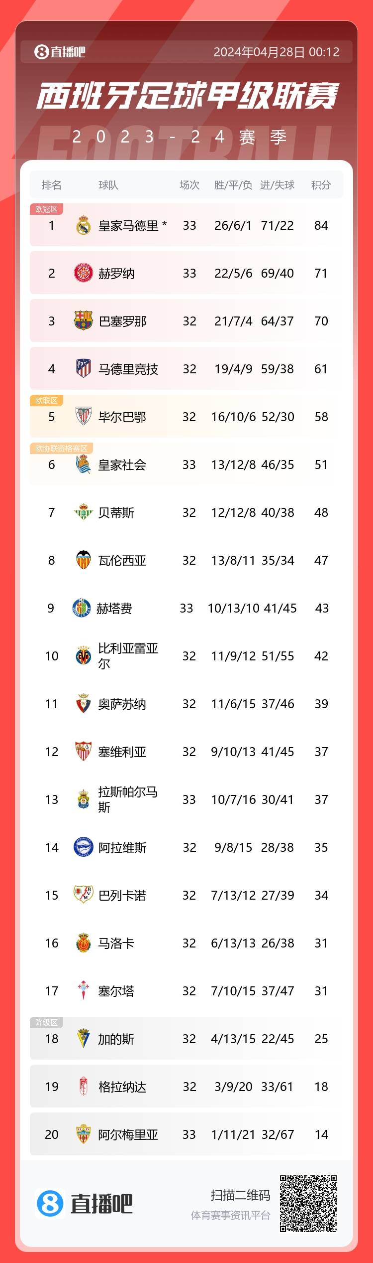 ????垫底降入西乙!阿尔梅里亚33轮仅1胜积14分,成西甲首支降级队