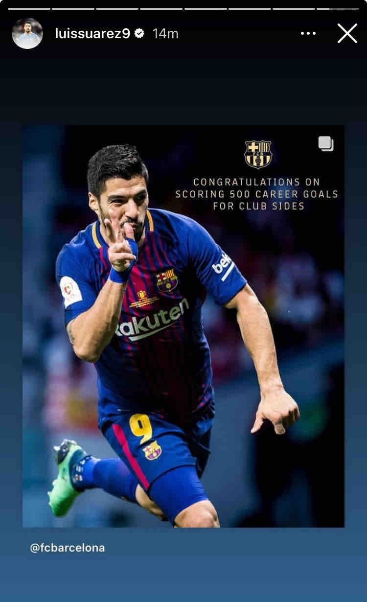 巴萨祝贺苏亚雷斯达成俱乐部生涯500球里程碑,苏牙转发❤️????