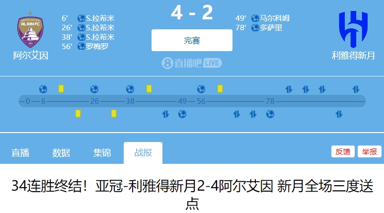 利雅得克星!阿尔艾因亚冠淘汰利雅得胜利,又终结新月34连胜