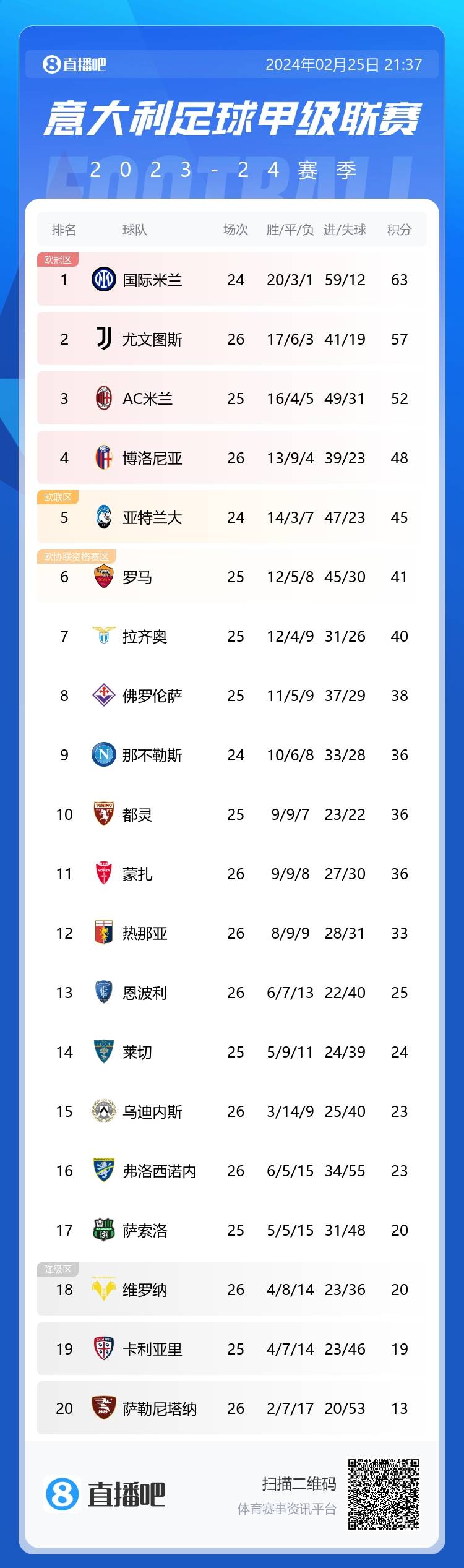意甲积分榜:尤文绝杀迎近5轮首胜,落后榜首国米6分&领先米兰5分