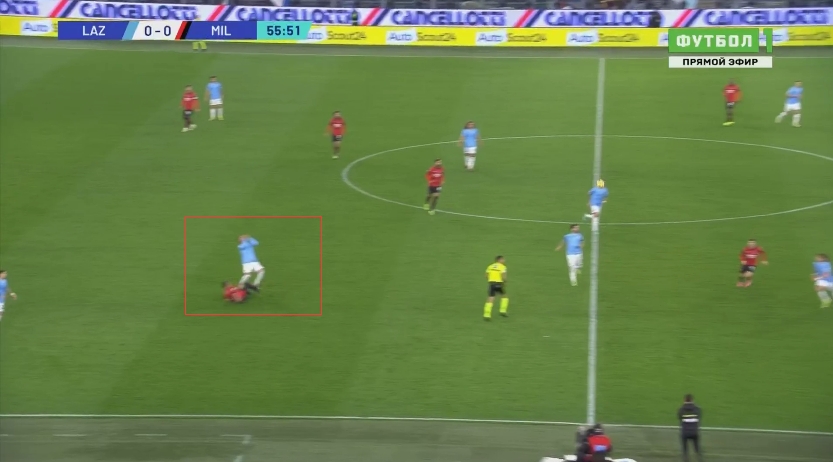 米兰多打1人!拉齐奥后卫拉人犯规,两黄变一红遭罚下