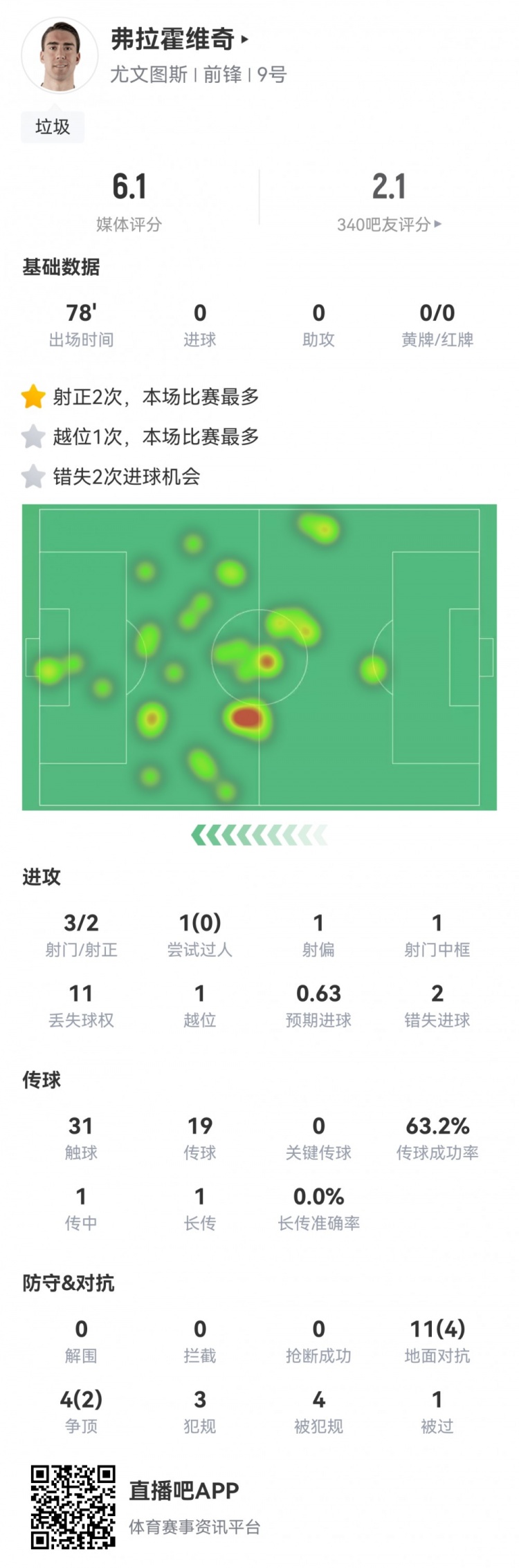 迷失!DV9本场数据:1次中框,2次错失良机,评分全场最低6.1分