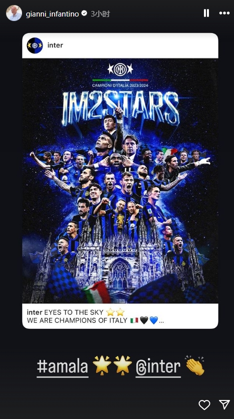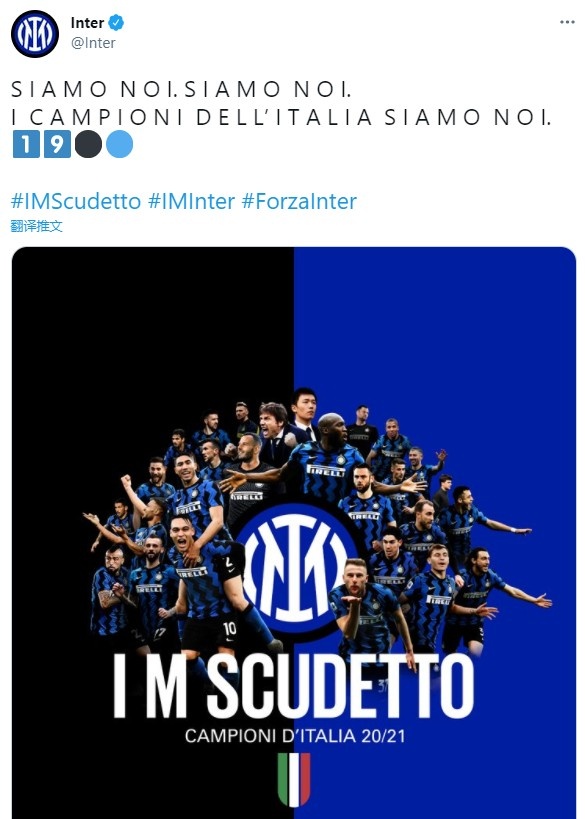 在绿茵界历史长河中,能在一个国家的顶级联赛夺下20冠,真是凤毛麟角,完成这个伟业要拿出的斗志、毅力和决心,更是不可计量。早上,在VS米兰的同城德比战中,蓝黑军团2-1轻松战胜对手,成功提前5轮捧起了队史上第20座冠军奖杯,绣上了第二颗星,完成了多少辈名宿传奇的志愿,实现了这个伟大的、被永久载入史册的成就。这是荣耀的赞歌,这是励志的诗篇,这是光辉的事迹,这是令支持者永远难忘的梦幻。