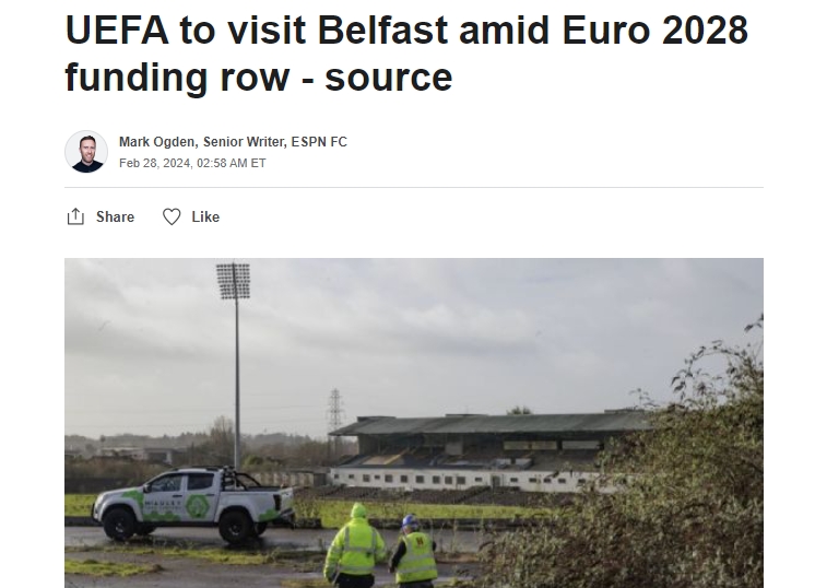 ESPN:2028年欧洲杯球场重建计划搁置,欧足联到访参观