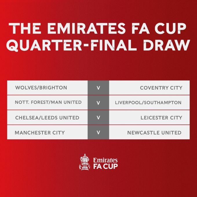 足总杯1/4决赛对阵:曼联、利物浦有望相遇 曼城PK纽卡
