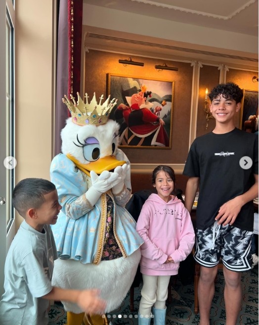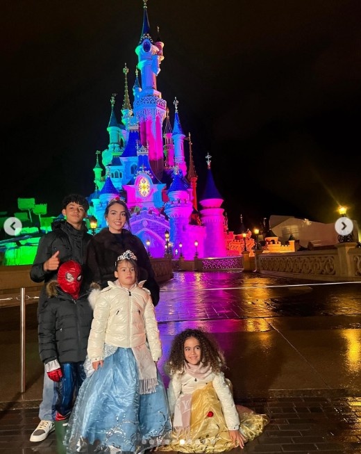 乔治娜晒图带四个孩子去巴黎迪士尼游玩:魔法世界