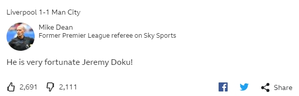 多库踢中麦卡无判罚!前英超裁判麦克-迪恩:他非常幸运