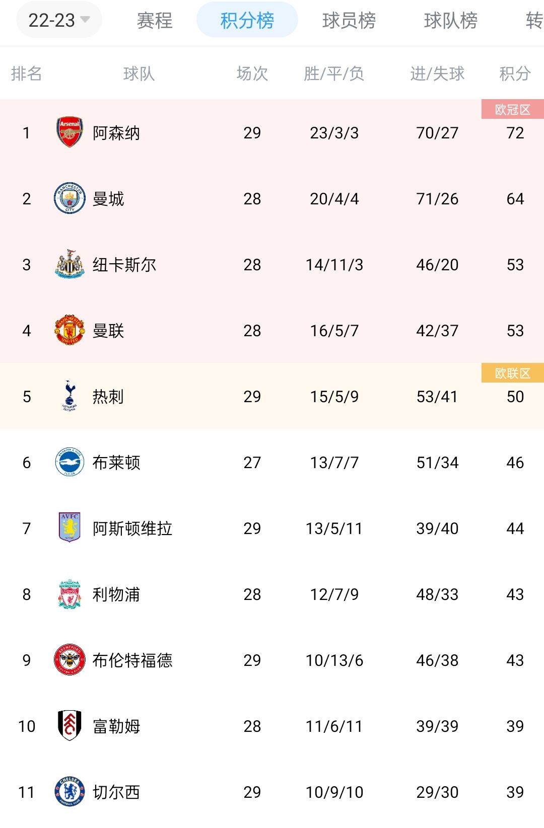 下滑明显!纽卡28轮后仅排第10,上赛季同期排名第3