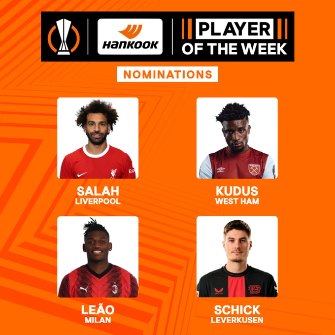 欧联杯本周最佳球员候选:萨拉赫、库杜斯、莱奥、希克