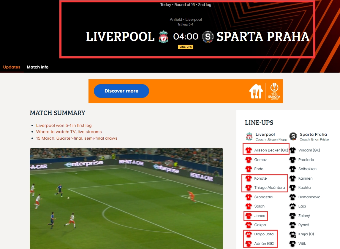 ????被黑了?欧足联官网发布利物浦首发,多名伤员在列&2门将先发