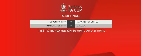 足总杯半决赛对阵:曼城vs切尔西,考文垂vs曼联