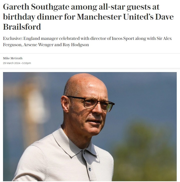 3月30日消息 据英格兰媒体《每日电讯报》 报道,英力士体育总监戴夫-布雷斯福德近日举办了60岁生日晚宴,英格兰国家队主教练索斯盖特、弗格森、温格以及罗伊-霍奇森都作为嘉宾参加了宴会。