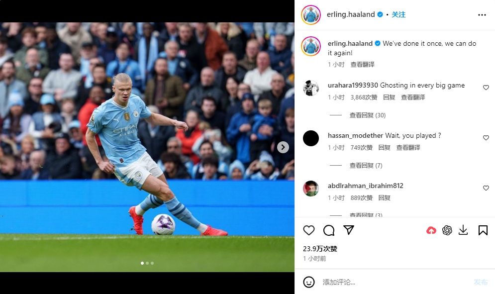 - 哈兰德回应批评:我进球时没人说我控球能力不行,这不是我的工作