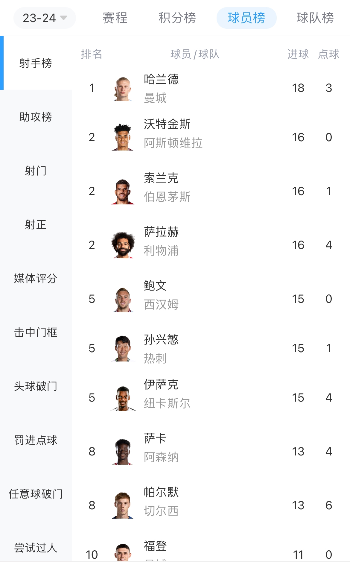 效率下降,哈兰德上赛季英超35场36球夺金靴,本赛季目前24场18球