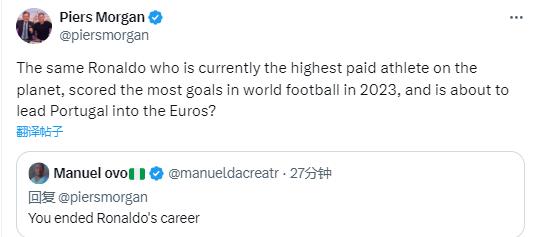 结束C罗生涯?摩根反驳:C罗薪水最高&去年进球最多&将参加欧洲杯