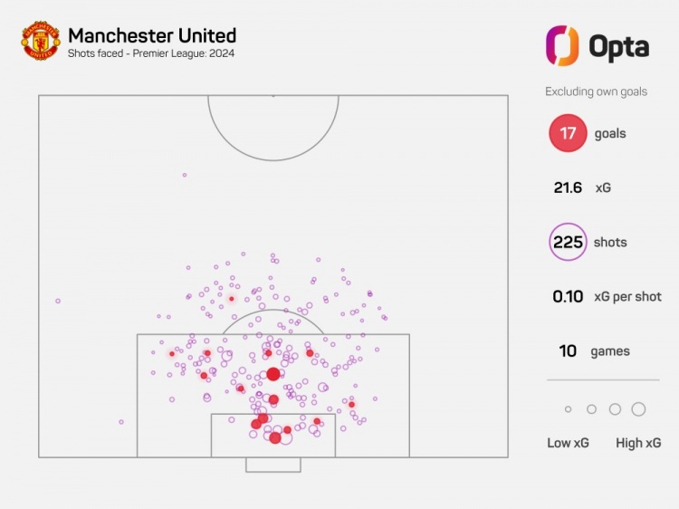 心疼奥纳纳????曼联2024年10场比赛已被射225脚 五大联赛排名第一