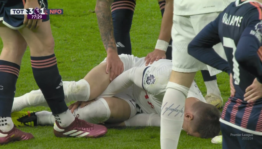 危险????洛塞尔索反抢遭踢倒,慢镜头显示其膝盖遭鞋钉蹬到