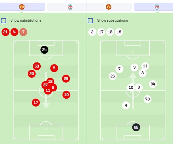 双红会平均站位:曼联两翼过半场,利物浦仅两中卫+门将没过半场