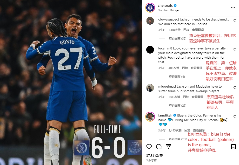 切尔西在凌晨的英超比赛中6-0埃弗顿,但本场比赛马杜埃凯杰克逊与帕尔默抢罚点球,造成了不愉快。