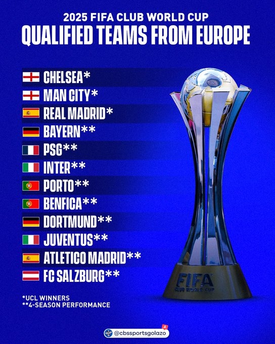 22队已获得2025世俱杯参赛资格:
