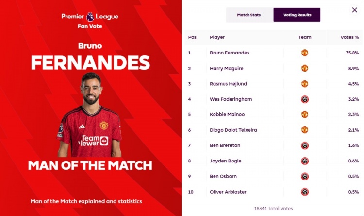 2射1传完美表现导演逆转!B费绝对优势当选全场最佳球员