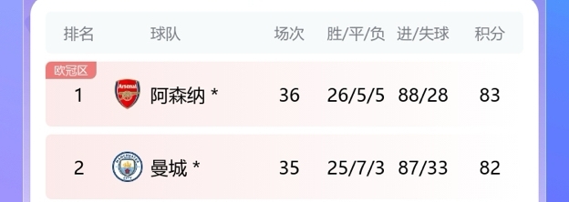 曼城本场比赛取得了4个净胜球,和阿森纳的净胜球差距缩小至6个。目前阿森纳手握60个净胜球,曼城54个,枪手先赛1场领先1分。