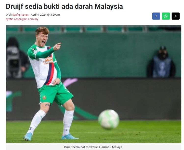 国足更难了?外媒:马来西亚正尝试归化荷兰1米9高中锋德鲁伊夫